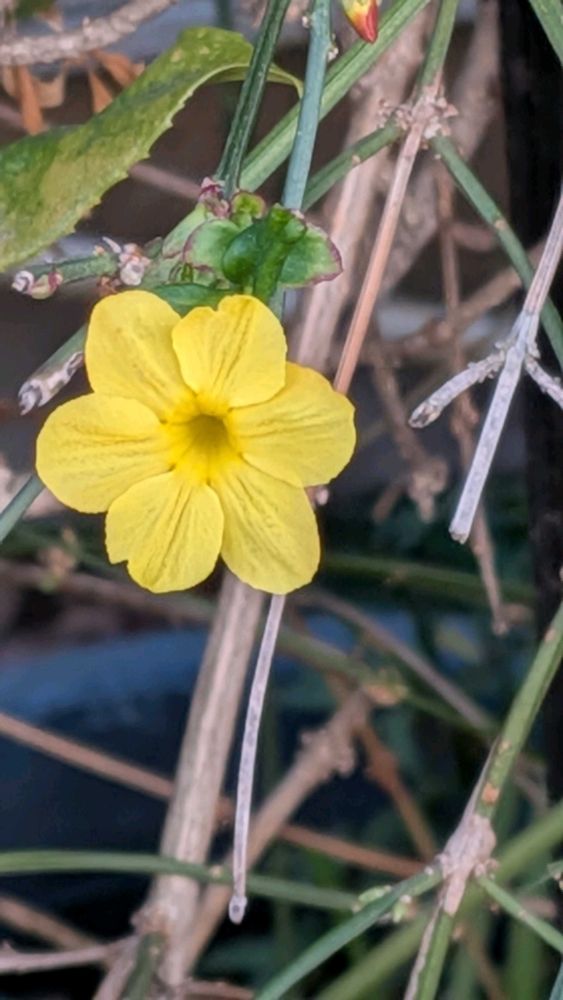 黄梅の花が一輪咲き出してました。