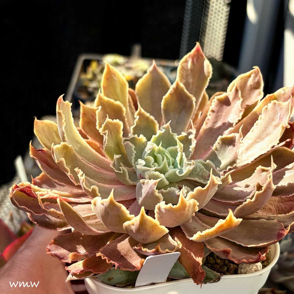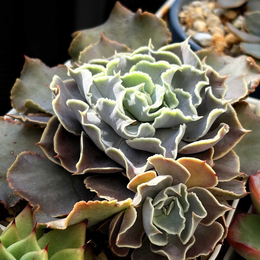 『大きくなる』から美しい色味に驚かされ、遂にこぶエケに変化して、とても魅力的な楽しみの多いフリルちゃん😍秋には子株の収穫も叶いました😊 今年はどんな驚きを見せてくれるかすごく楽しみなコです😍🎶