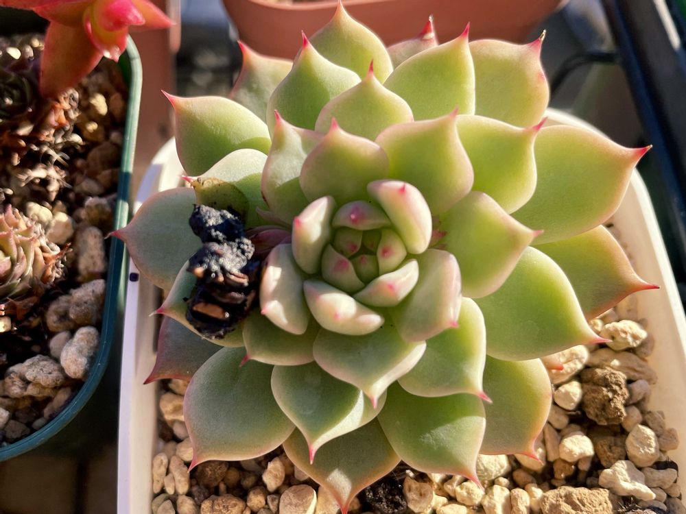 錦系とつぶつぶ系が好きなようでやめてほしいです!朧月ならなんぼでも食べてくれていいのにその隣に置いてた斑入りタイトゴメがボロッボロでした😂