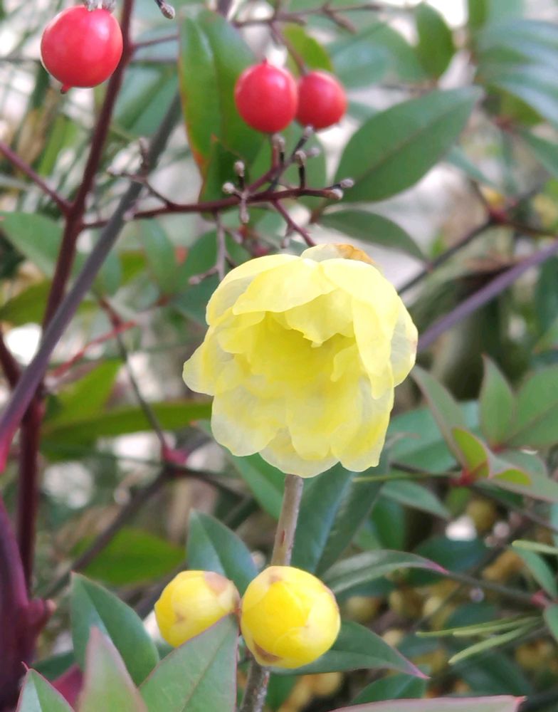 切り花にして玄関前に差している枝の方が早く咲き始めていますが、木に付いた蕾も膨らんで来ています💛💛