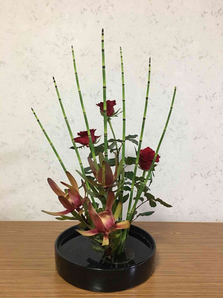 全体的にシックな落ち着いた秋色🍁ではあるが、トクサが夏のなごりを感じさせる意外な取り合わせ🌹