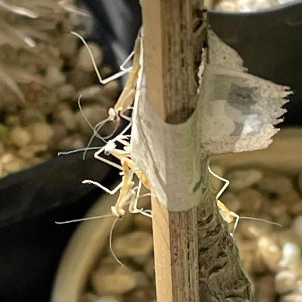ラメリーに着いたカマキリの卵鞘から白い網のようなのが😳