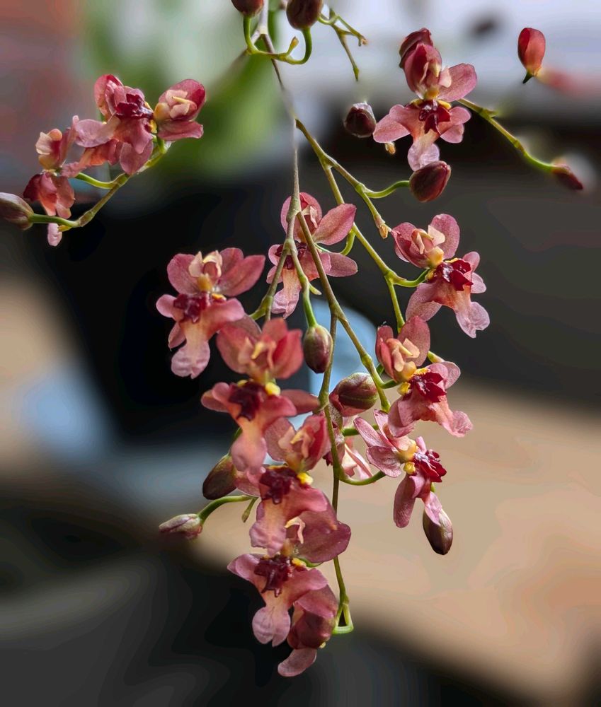 今日、連れ合いがJA主催のウォーキングに参加、抽選の1等でこれと同じ種類の咲いてないオンシジウムをもらってきました🤭✌️