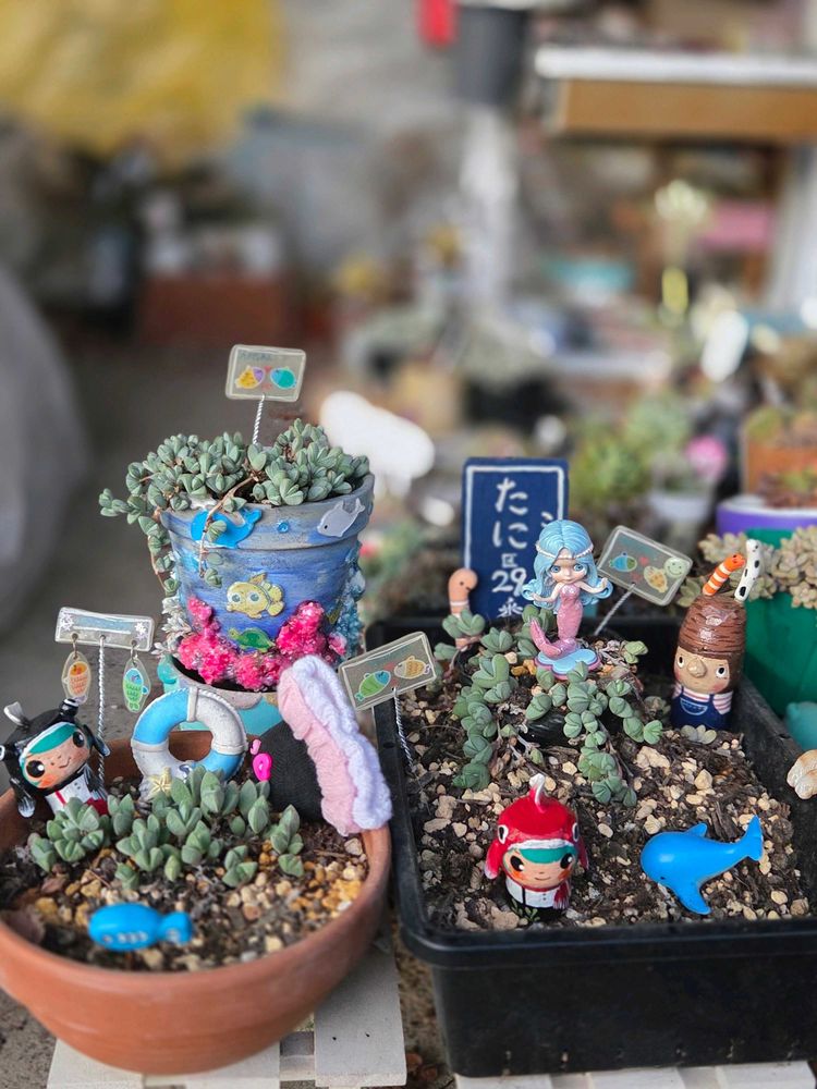 ※マックⓂ️🍔🍟ムーミン、ミーチャンのマスコットに寄せ植えさん頑張っています☺