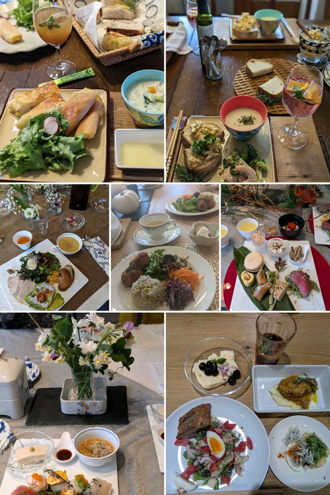 Googleフォトが「似ている写真や動画」と題してコラージュしてくれました🍀😊✨2023年〜2025年🧑🍳お料理教室、お友達の🏠Lᵘⁿᑦᑋ ะ𐂐(o'ч'o)お花が飾っていました~♬♬自家製のハーブ🌿