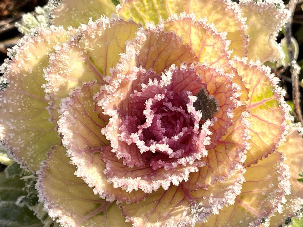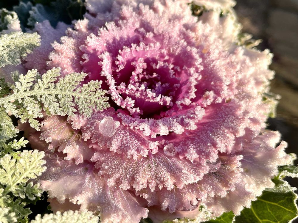 霜が降って縁取られる事は、時々あるのですが、小さな氷の粒まで付く事は、条件が重ならないと、中々見られません❄️🧊