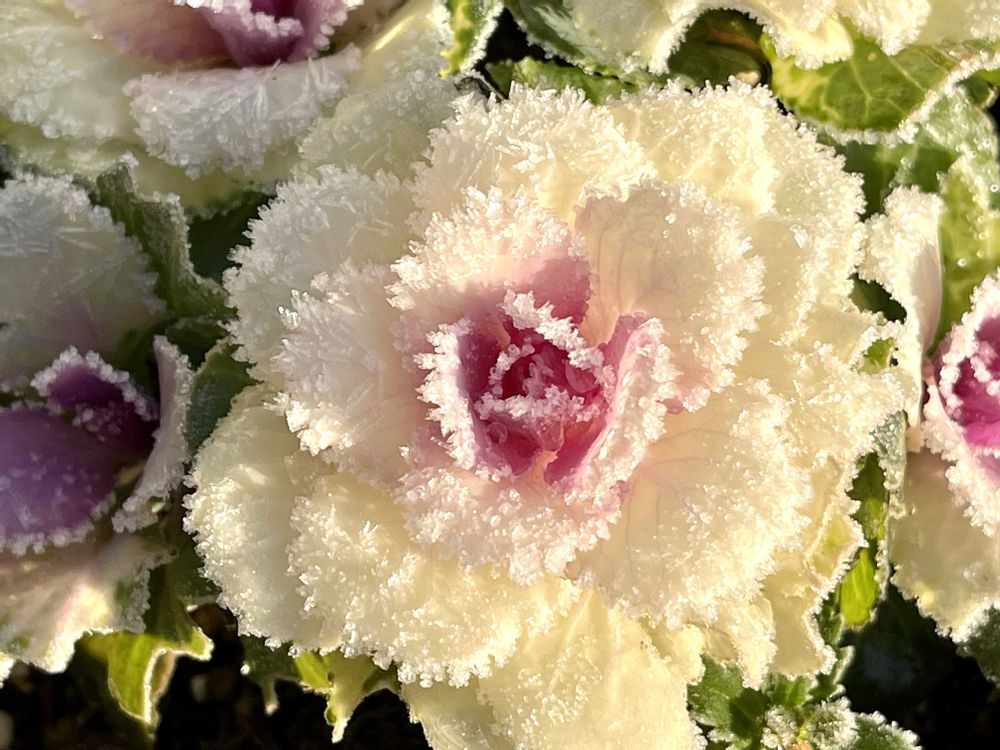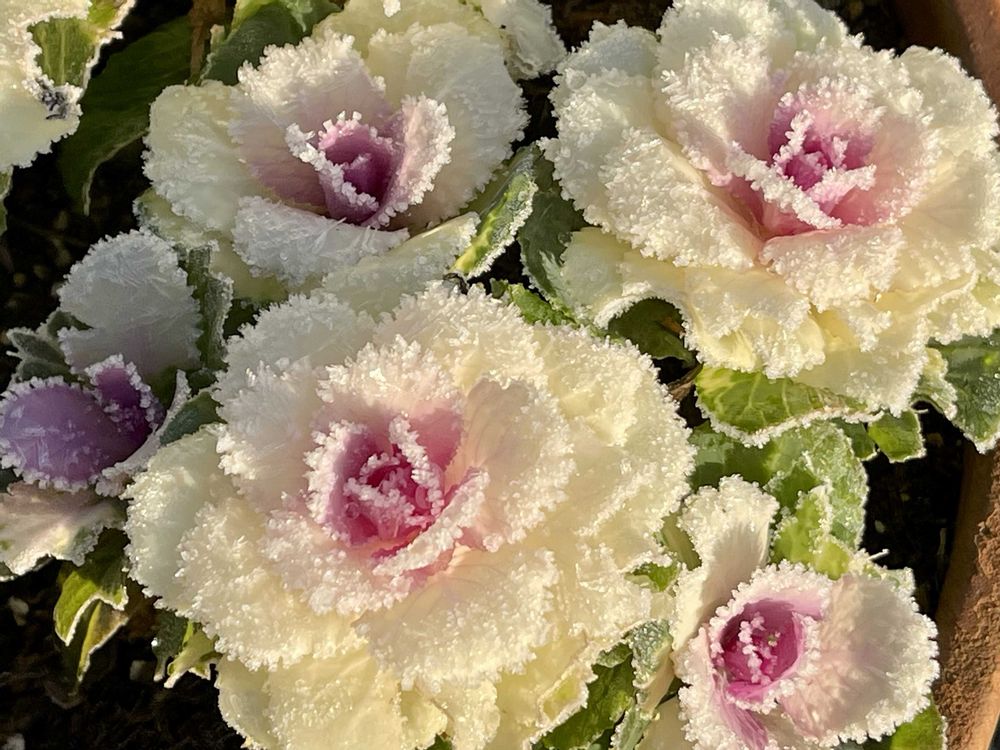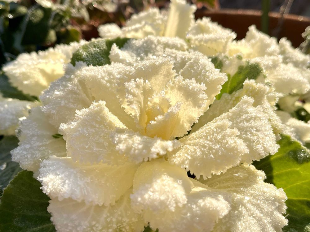 霜と前日の雨が凍った粒を乗せて、お化粧をしたように綺麗✨✨🧊❄️