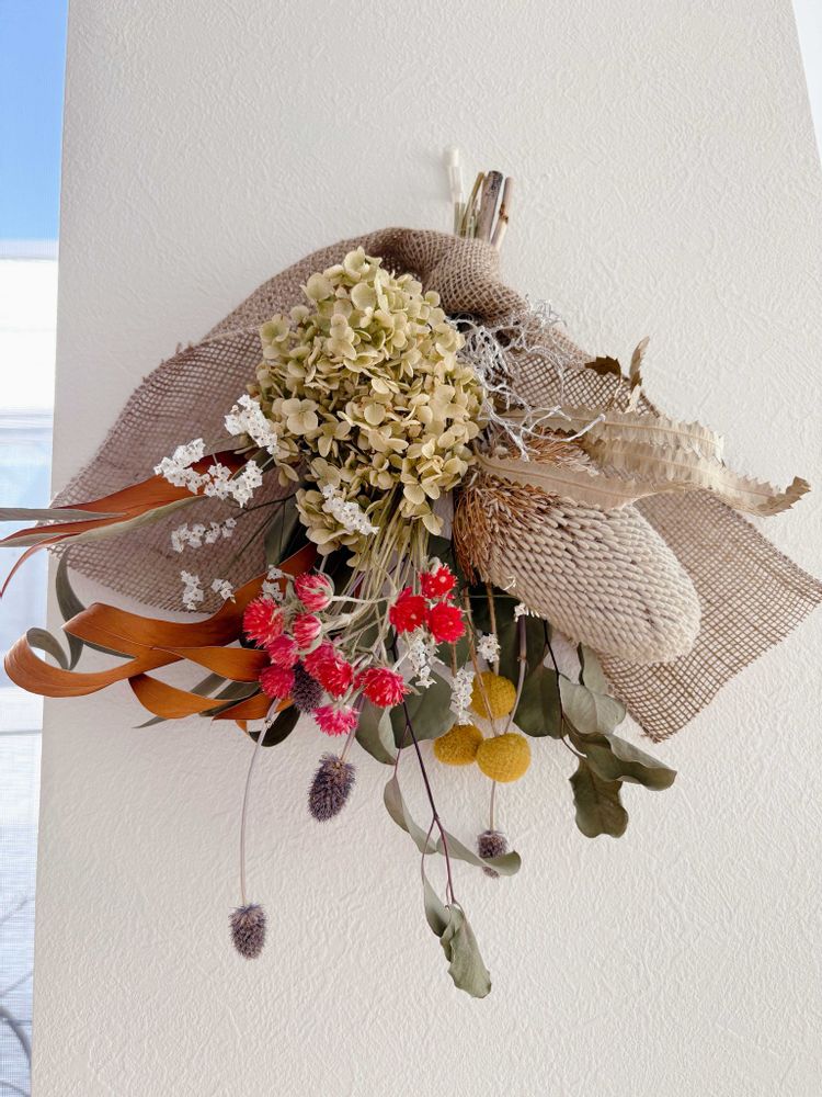 2つ目は、千日紅を集めた小さなスワッグです💐