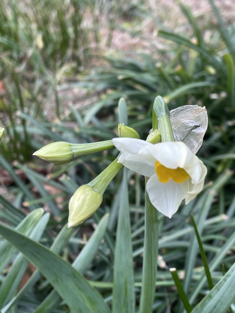 植え込みには元気なガザニア、今年初めてのスイセンも見つけたょ❣️