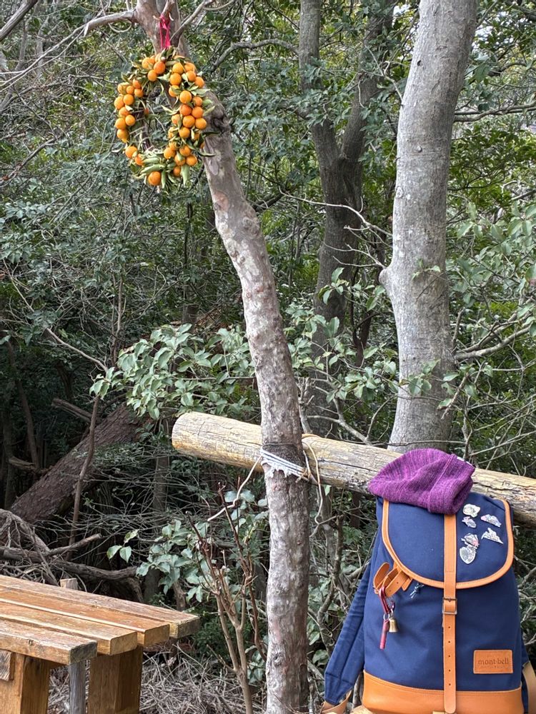 たまに、簡単なリースや、クリスマス時期、お正月前に合わせたリースが飾ってあるのに出会う山もありますが、キンカンリースは初めてでした🍊🍊🍊
