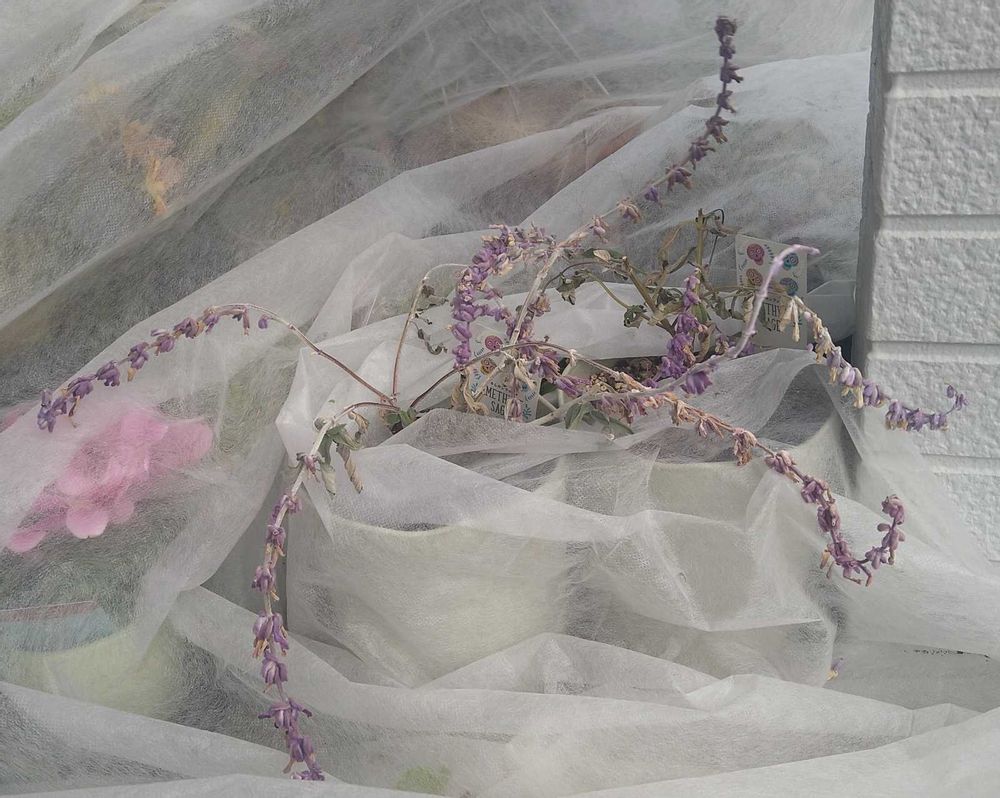 地植えにしたので 根元に盛り土をして不織布をかけています🌿