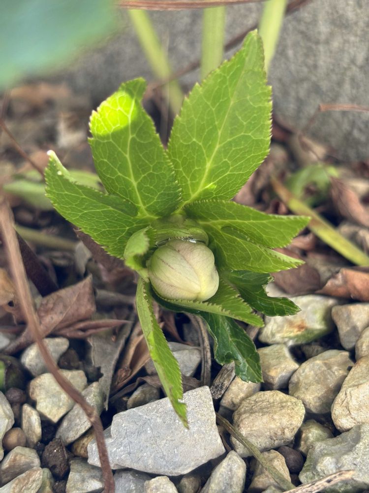 ②クリスマスローズのかわいい蕾が顔を見せるようになりました。