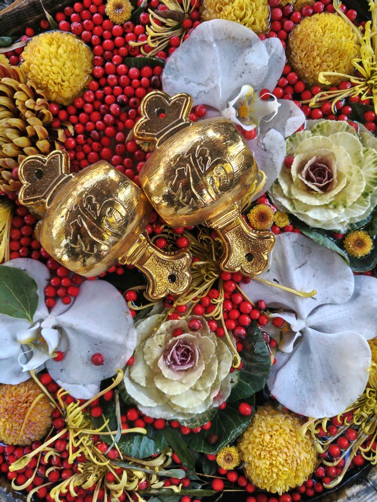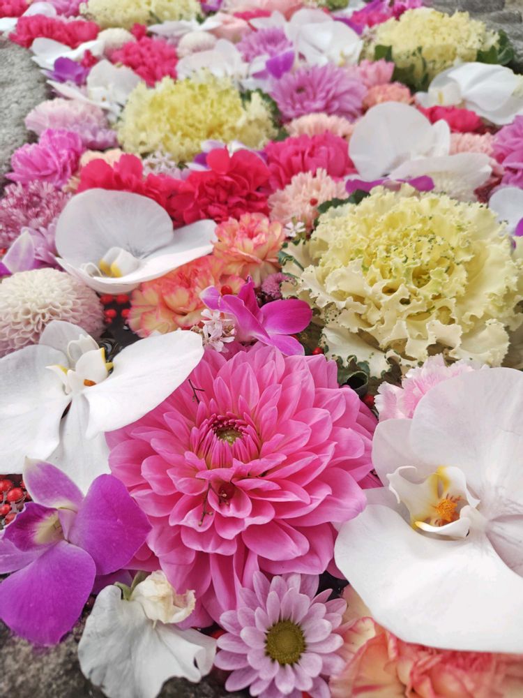 成人のお祝いの 花手水 振り袖のイメージ 華やかですね〜