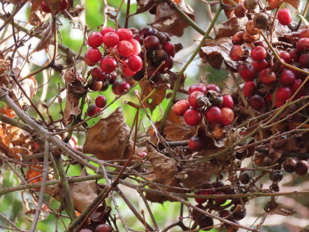 秋から冬の実りは鳥たちのご馳走で、私も色々素敵な実りの様子を沢山楽しませてもらっています😍🎶💕