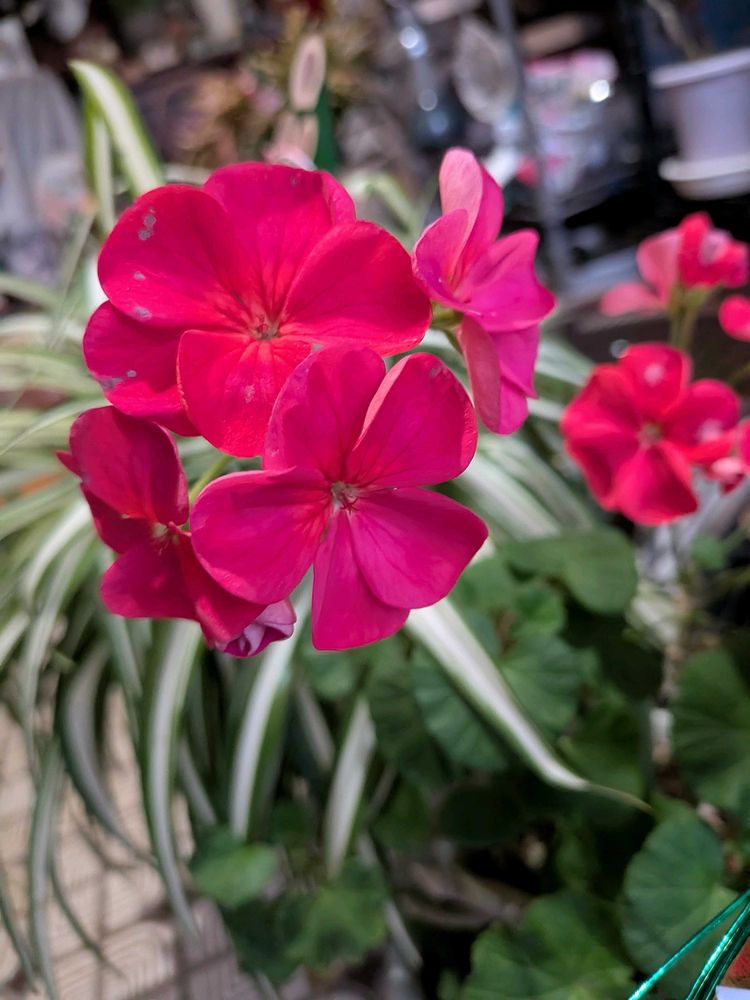 1️⃣玄関内で育つ赤いゼラニウムが咲いています🥰