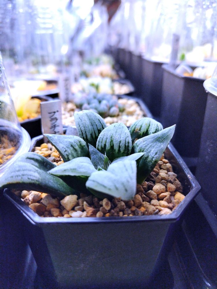 コーデックス師匠と仰ぐGS 友さんへパキプス君をお届けがてら、1年ぶりの二和園へ🚗💨 師匠のお友達と4人でハウスの中を行ったり来たり⇄ 植欲増進中の私は購入🈲️ルールなんて無視💦 ずっと気になっていた子たちをGETしてきました😊 植物名: 瑠璃殿錦 学名 :Hawworthia limifolia f.variegata 英名 :Fairy Washboard 科名 :ユリ科 属名 :ハオルチア属 原産地: 南アフリカケープ州 流通名: 瑠璃殿錦 生育型: 春秋型