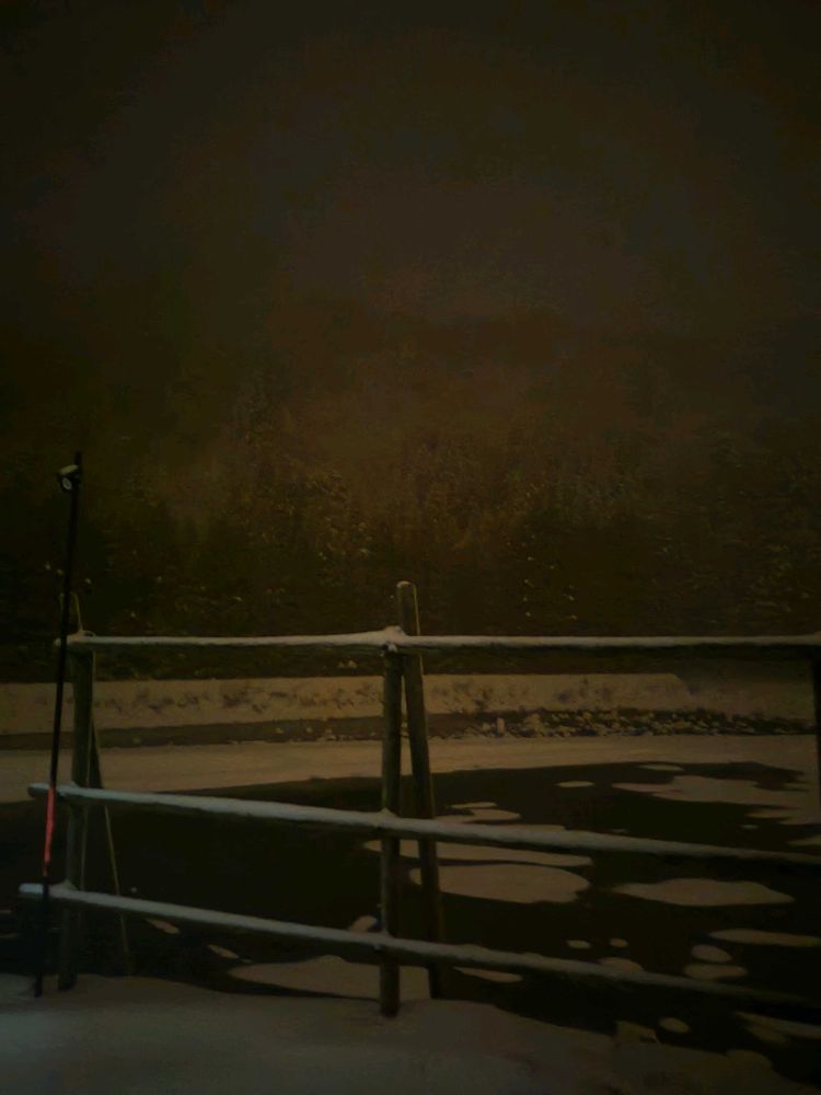 外がオレンジ色なのはスキー場のライトが反射して、うちまで届いてます。