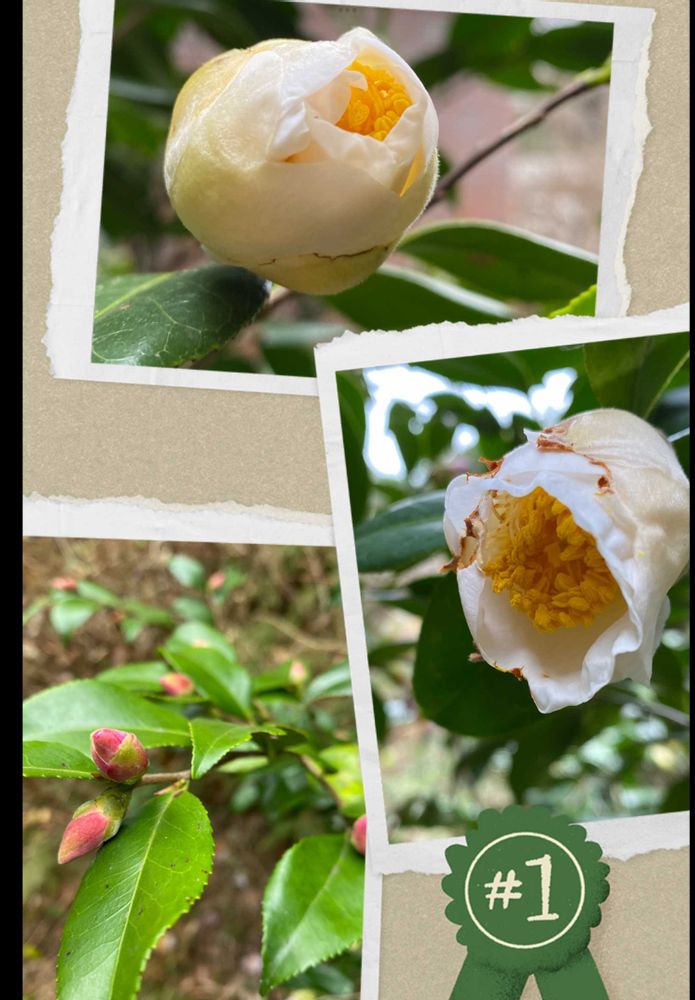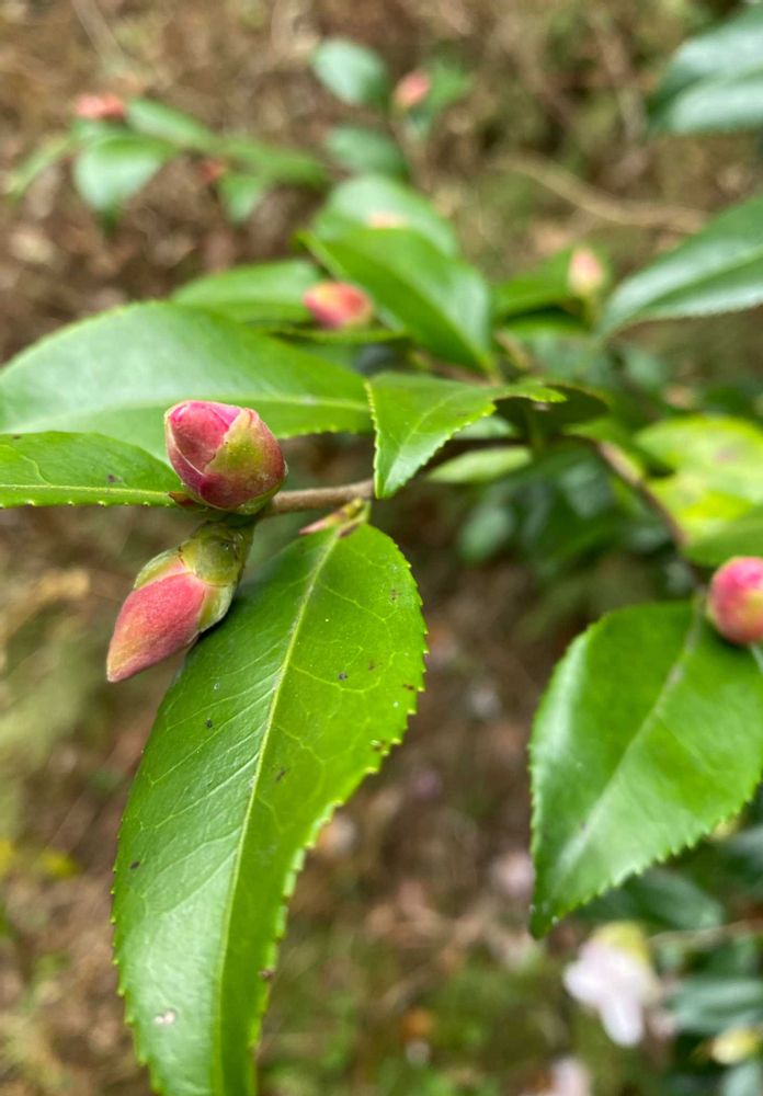 ⬇️下 「湊の曙」椿はツボミのまま年越しをして未だお花が咲きません。
