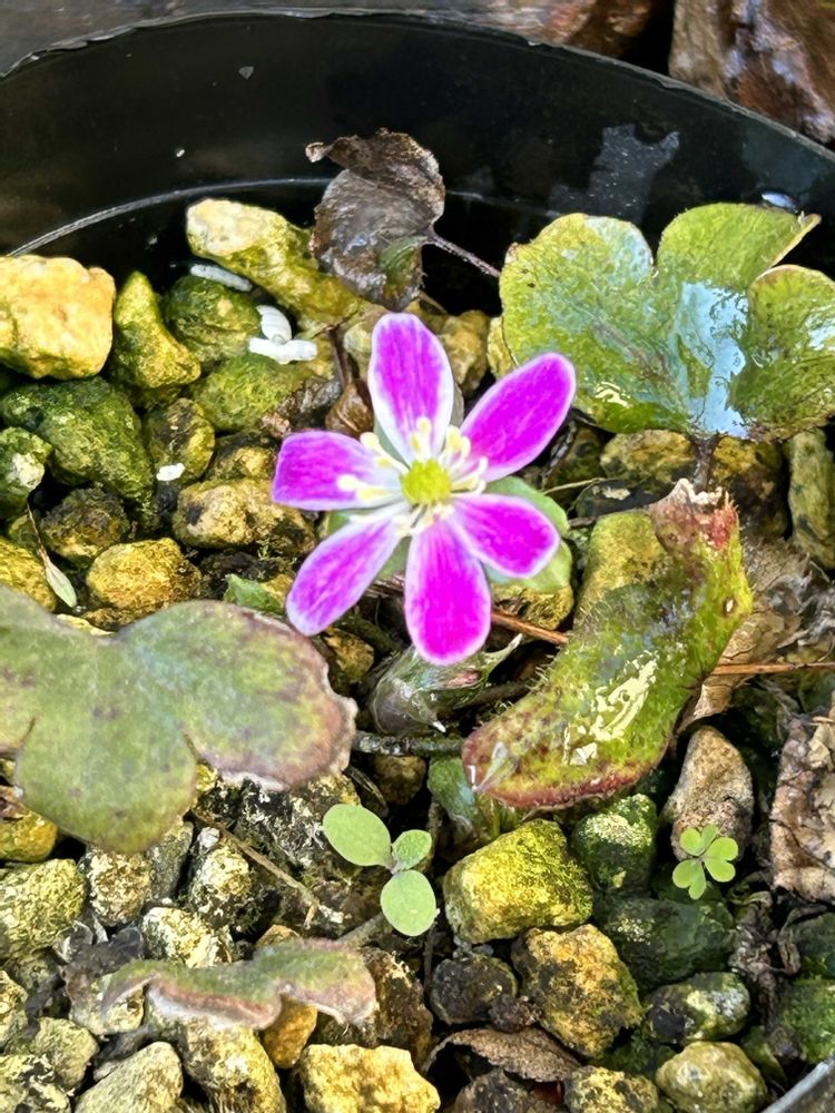 こんな時期に⁉️庭で雪割草が咲いていました🌸
