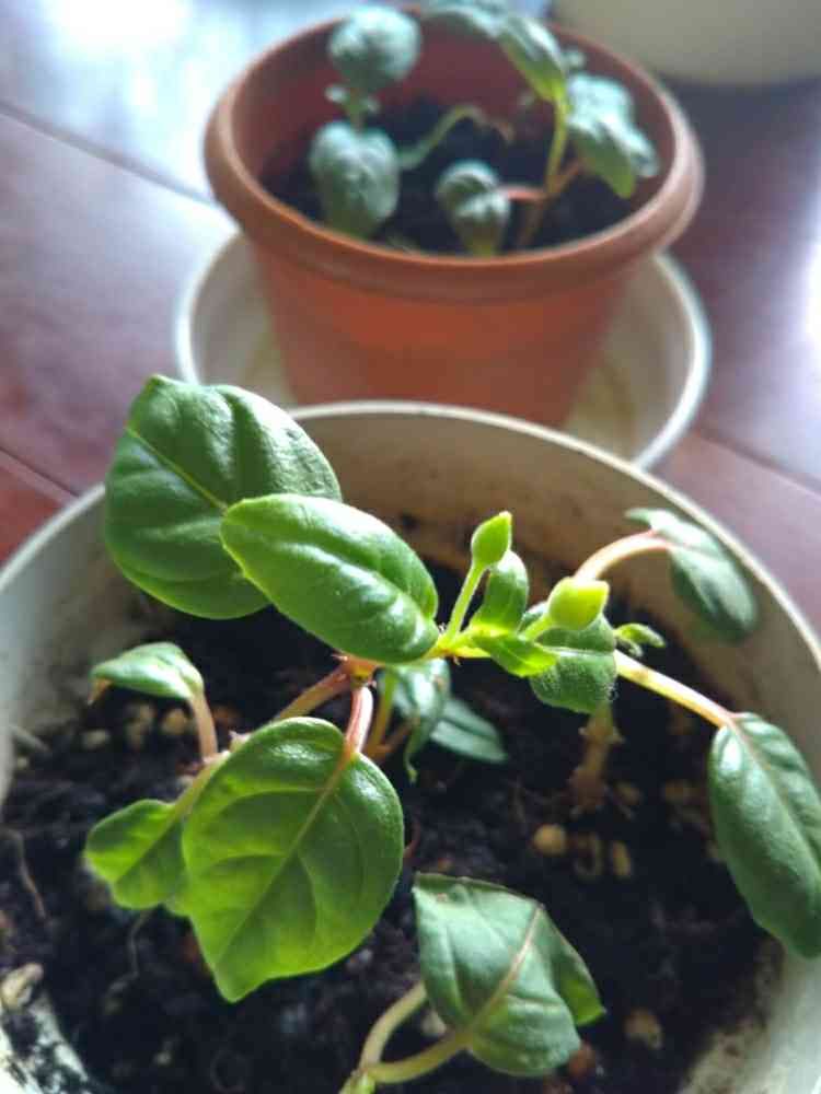 挿し木したものに小さな蕾が!後ろのもフクシアです。上手く成長してくれるかな。