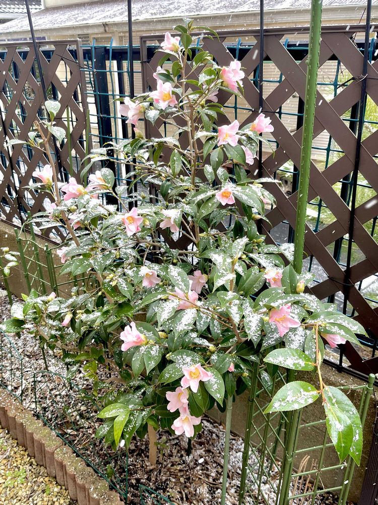 雪が舞う中で満開です ((*´꒳`*))