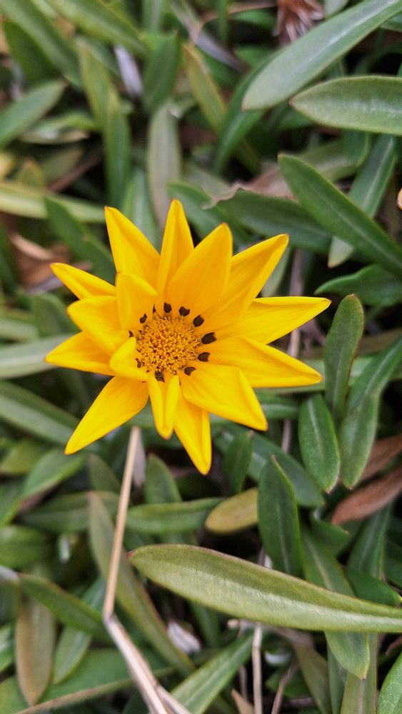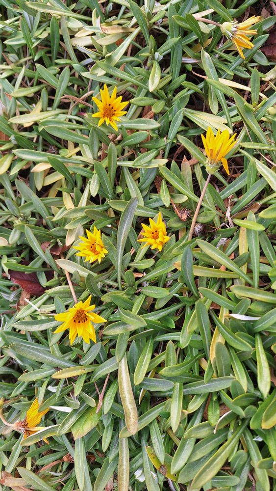 散歩の途中の花壇に ガザニアが咲いていました この花は1年中咲いて居るのですね🌼🌼🌼
