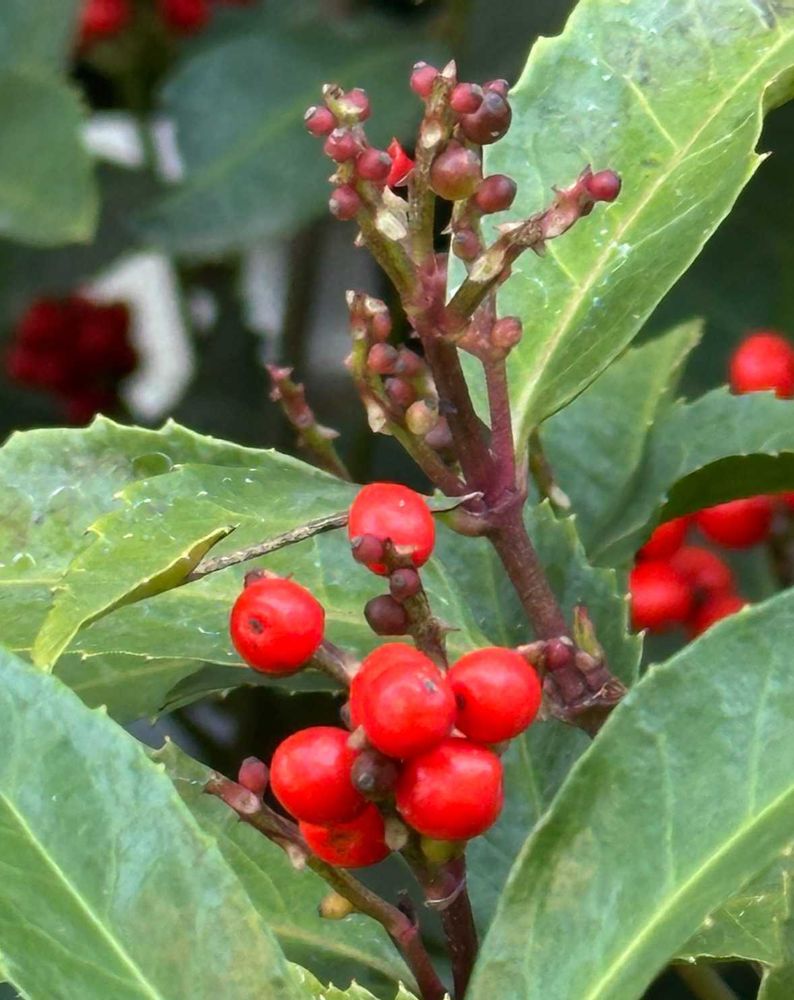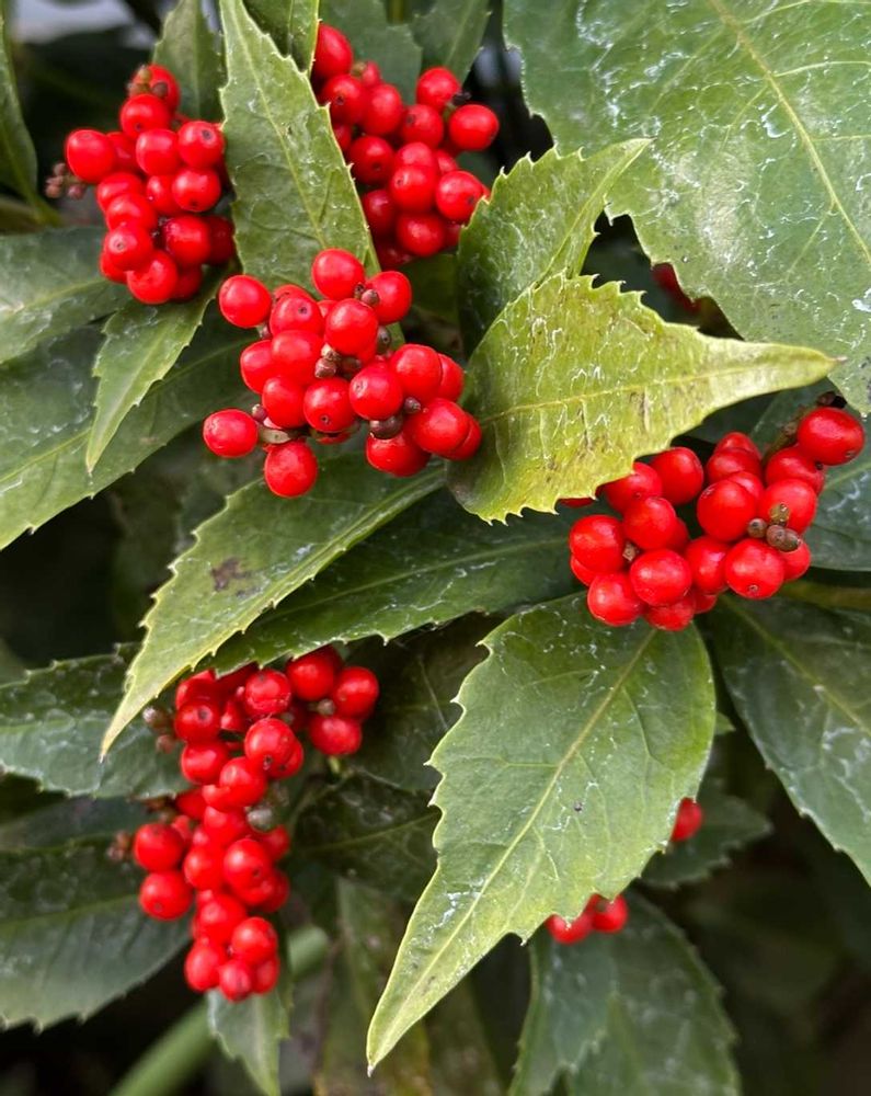 センリョウにとっては、真っ赤になった実が小鳥に運ばれて行くのは戦略なんですよね!
