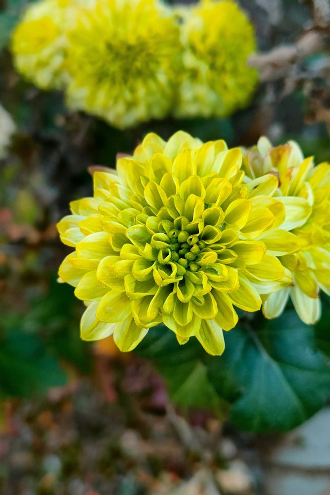 保育園前の花壇にライムグリーンの小菊が咲いていました😍