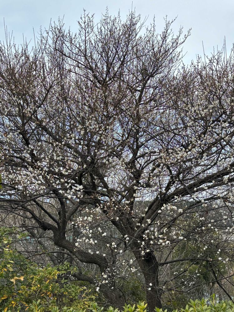 内苑では、十月桜と白梅が寒さに耐えながら咲いていました。