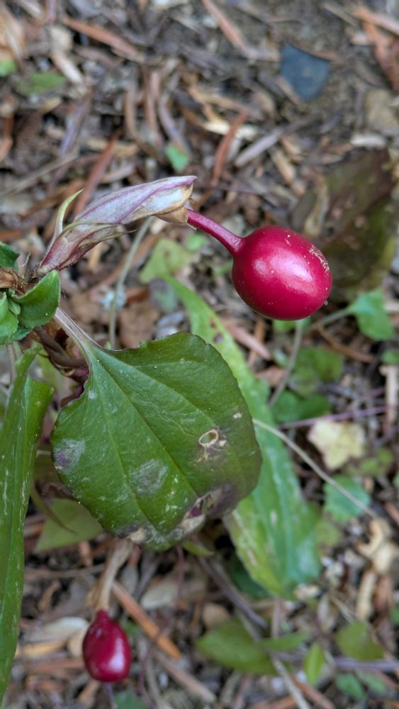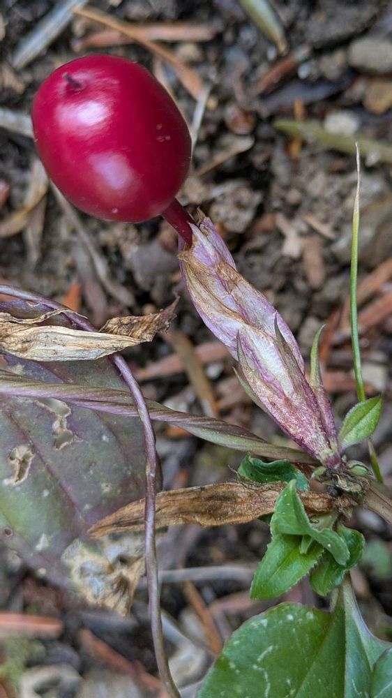 林の縁で出会う赤い実は、枯野の地表を這っていた🔴