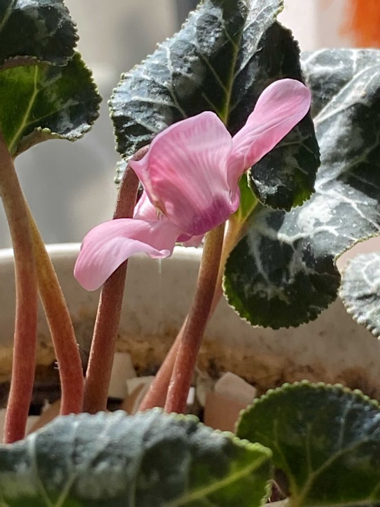 室内のガーデンシクラメンの1号花が咲きました 2号は未定😅