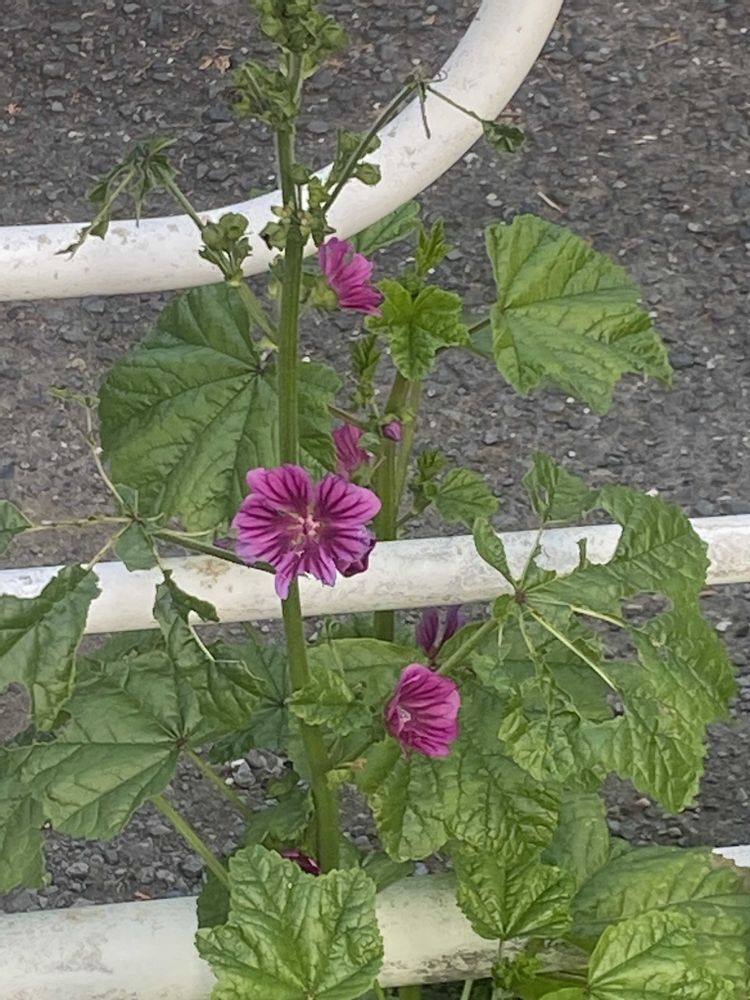 ウスベニアオイがコンクリートの割れ目からっ!