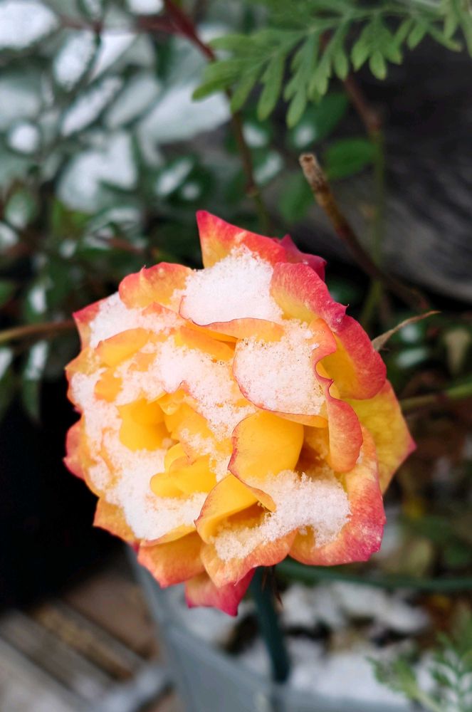 かろうじて玄関軒下のバラの蕾は❄を被らずにいます😊