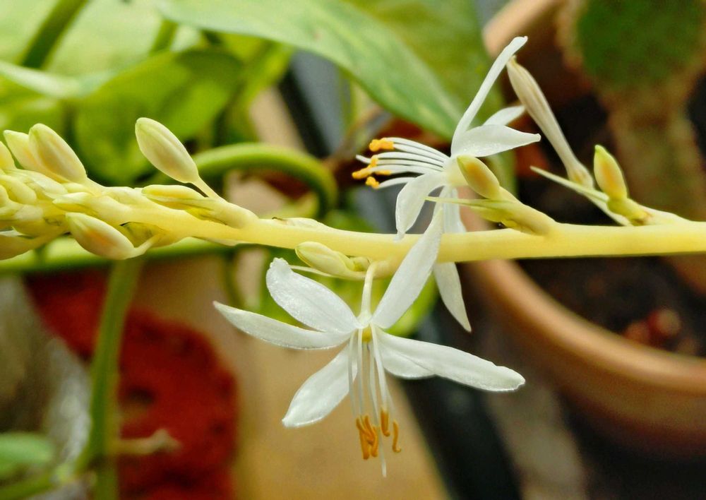 オリズルランが数日前から咲きだしました。かわいい🤍小さな白い花です。