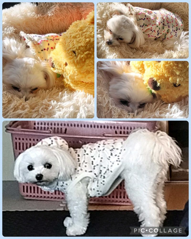 ゆずちゃんお洋服嫌でもといと水飲みは動けるんだね🐕