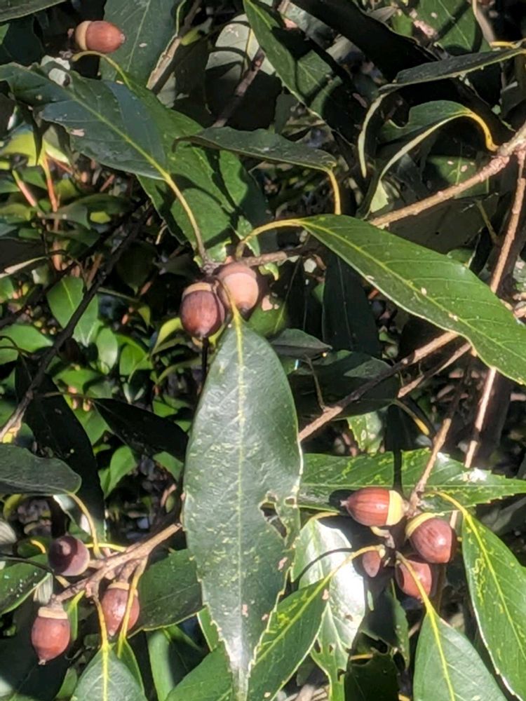 ②ドングリ、落ちずにきれいな色。シラカシと教えていただきました(葉の上半分に鋸歯)