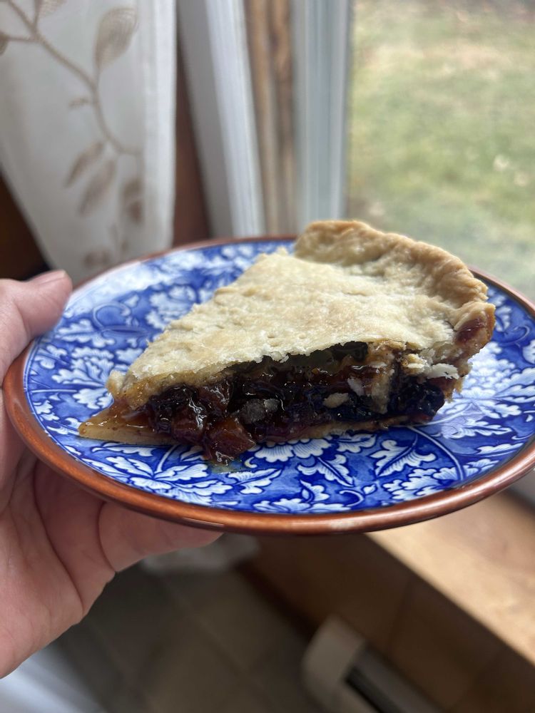 ブランデーが効いた大人の味のパイですよ!ちょっと珍しいと思います。アメリカ人でも、イギリス系の人じゃないと、食べないかもしれません。サスケ元気です😃🐕
