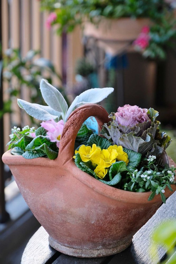 これはプリムラやアリッサムが花芽増えてきたら溢れる花カゴになるパターンかな(ღ*ˇ ˇ*)。o❤