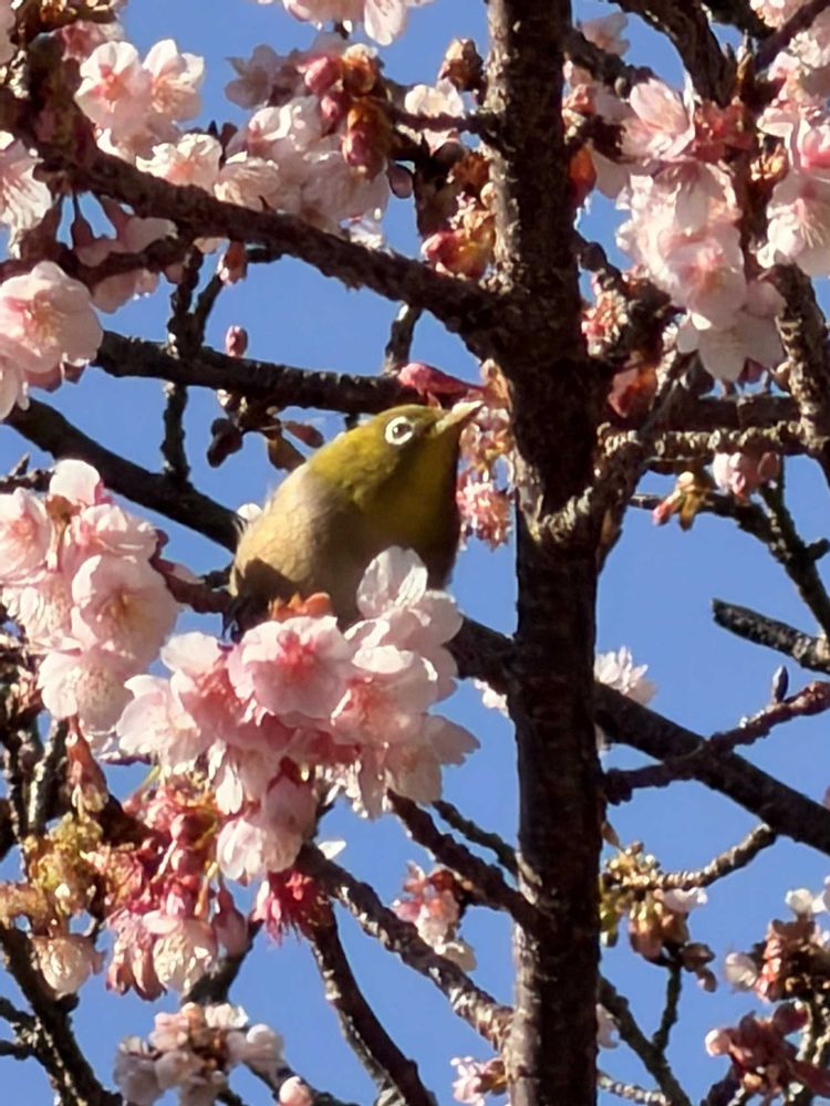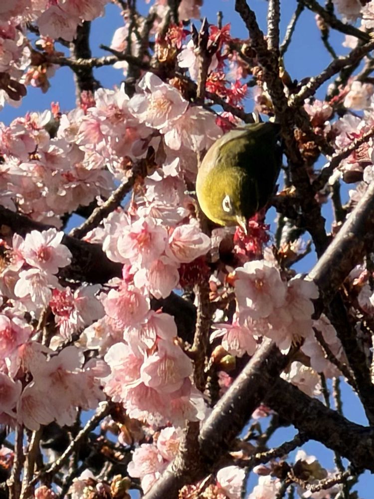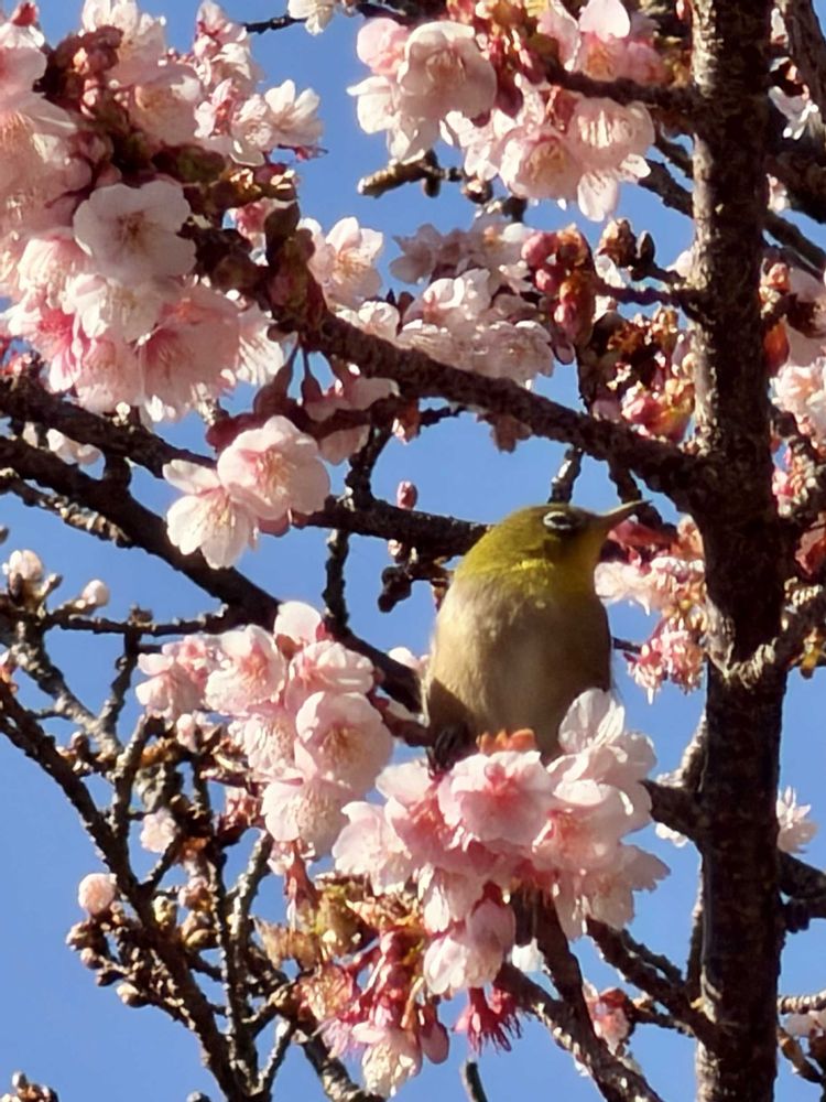 寒桜とメジロ絵になりますね〜🌸💚