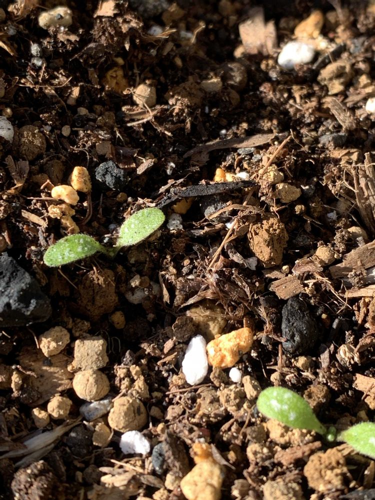 ②庭には直まきしたネモフィラの芽がたくさん出ています