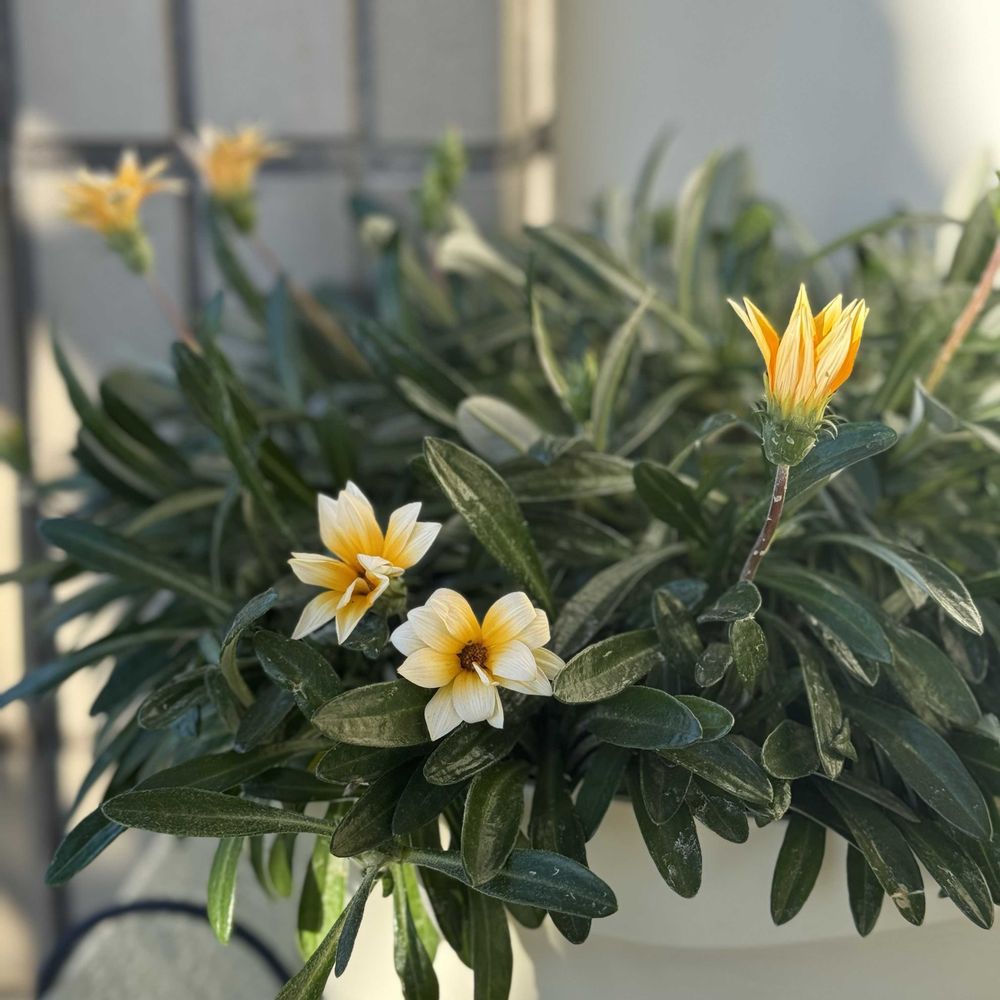 pic2 PWガザニアビースト「カナリアスマイル」。夏越しして10号のスクエア鉢に植え替えたら冬に向かう季節でも明らかに上がる蕾がデカくなり、西向きの微妙すぎる環境でも「ビースト」を感じる育ちになってきました。すごい。