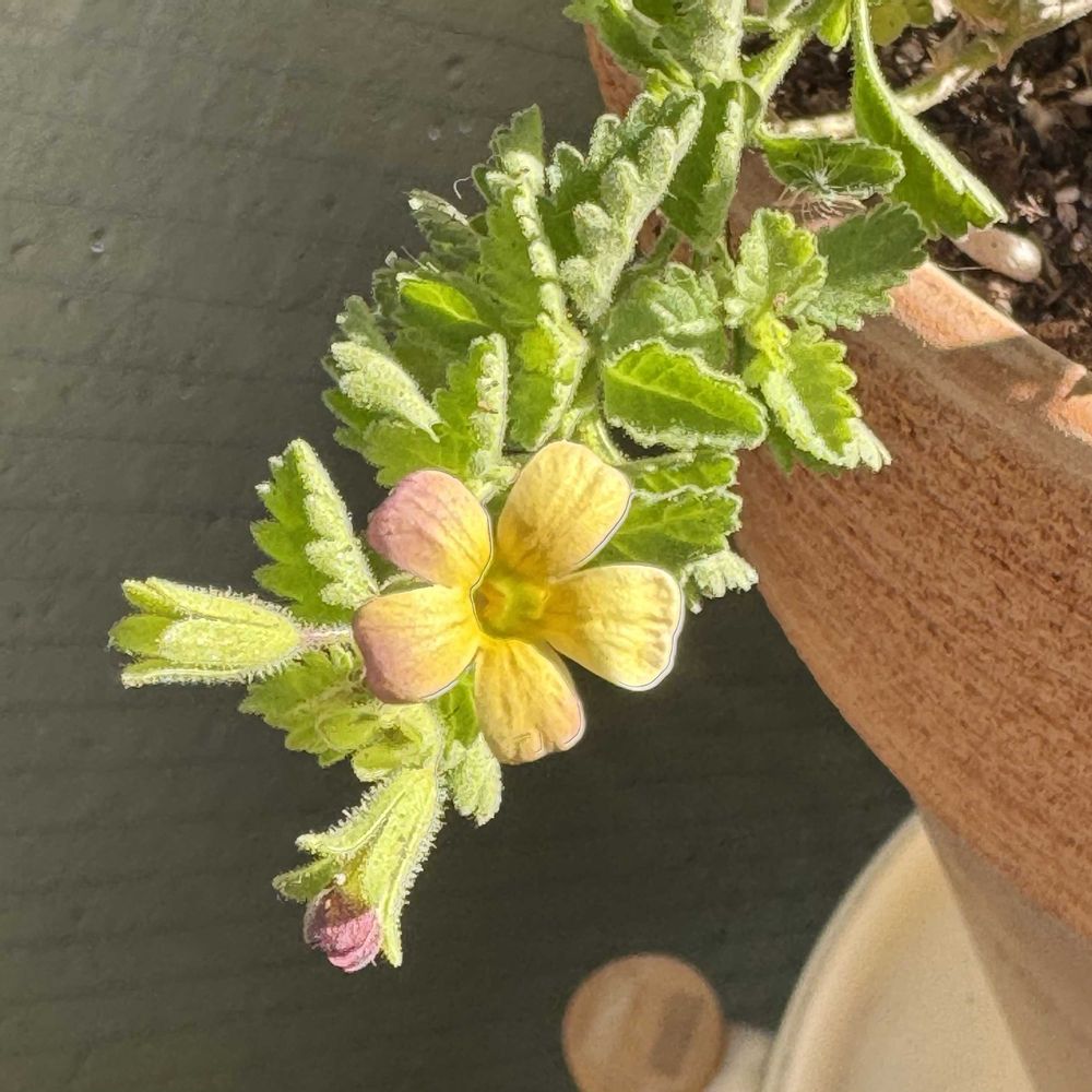 pic4 PWジャメスブリテニアサファリ「ピーチサンセット」。12月に寒さが厳しくなるまで淡々と花が咲き続けていたのにまず驚き。ただ株元に近い葉の枯れ込みが目立ってきたので短めに刈り込んだのですが残っていた花芽がここ数日で開花しました。情報の少ない植物ですが西向きの過酷な環境で新芽も着々と育っていてここ数年で買ったお花のなかで断トツに満足しています。
