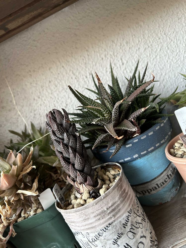 コーデックス師匠と仰ぐGS 友さんへパキプス君をお届けがてら、1年ぶりの二和園へ🚗💨 師匠のお友達と4人でハウスの中を行ったり来たり⇄ 植欲増進中の私は購入🈲️ルールなんて無視💦 ずっと気になっていた子たちをGETしてきました😊 植物名: 瑠璃殿錦 学名 :Hawworthia limifolia f.variegata 英名 :Fairy Washboard 科名 :ユリ科 属名 :ハオルチア属 原産地: 南アフリカケープ州 流通名: 瑠璃殿錦 生育型: 春秋型