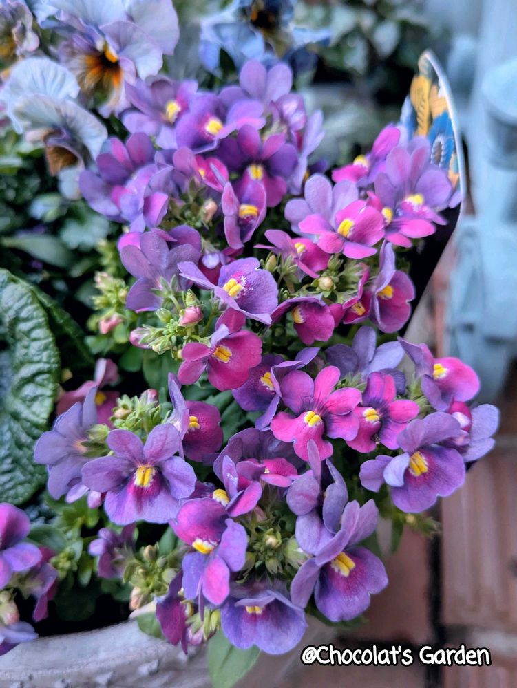 そして真っ白なプリムラさんやネメシアにアリッサムが入って絶妙な色合いの寄せ植えですね✨