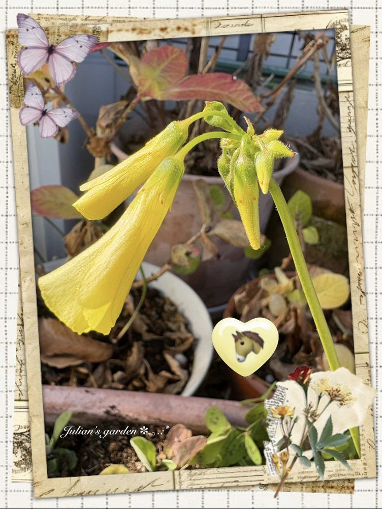 ①3日前に黄色いオキザリス(キバナオオカタバミ)の花蕾が少し開いてきていました💛