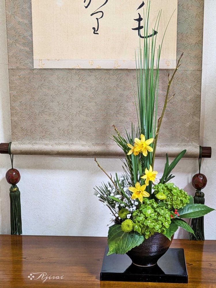 緑色が イキイキと鮮やかな~生け花ですね🍀素敵だな😍
