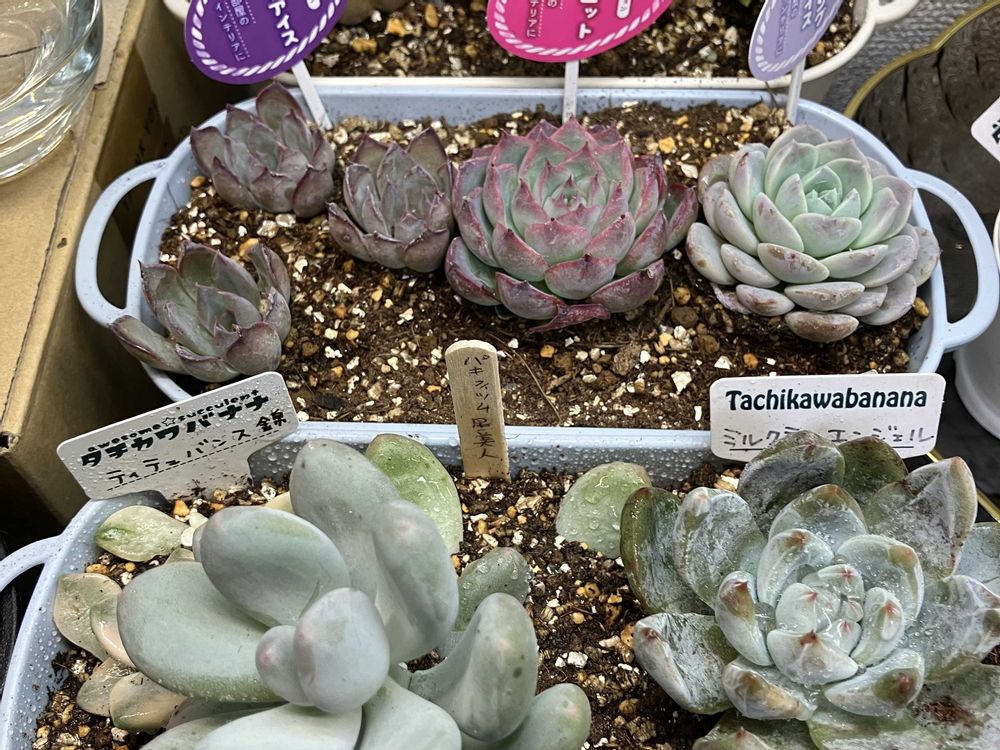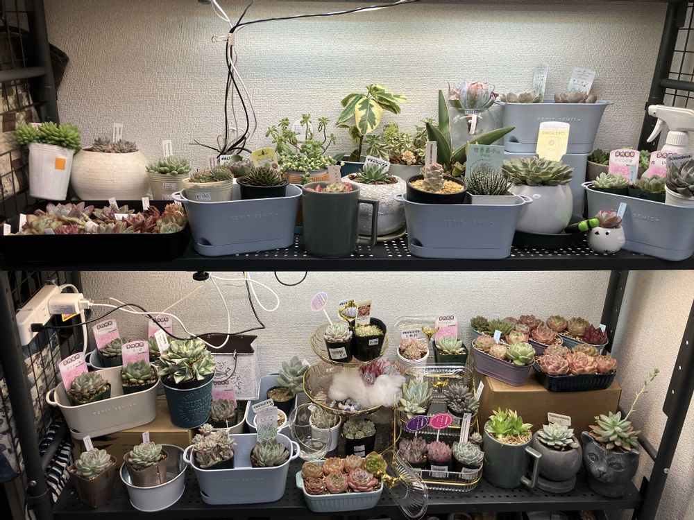 多肉棚がそろそろいっぱいになってきたので昨日の夜から百均の鉢に2〜3個くらいに詰めて植え替えとかしてたんだけど、ちょっと飽きてきたので気分転換に気になってた園芸店を見に行ったら、またまた購入してきちゃった💦