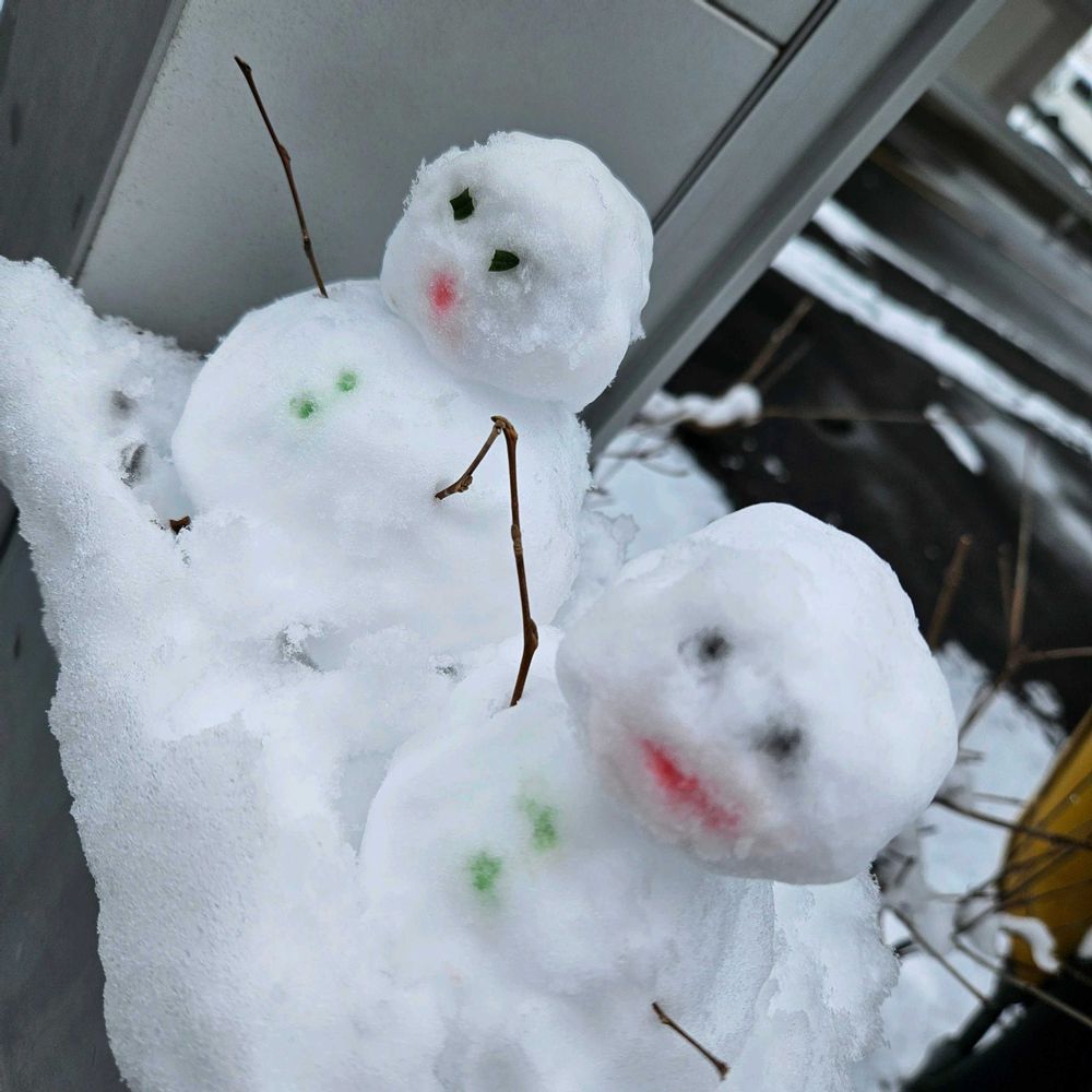雪が降ったんですね。寒い中、雪遊び❄️雪だるま。楽しそう❣️子供心が残っているんですね‼️若い。