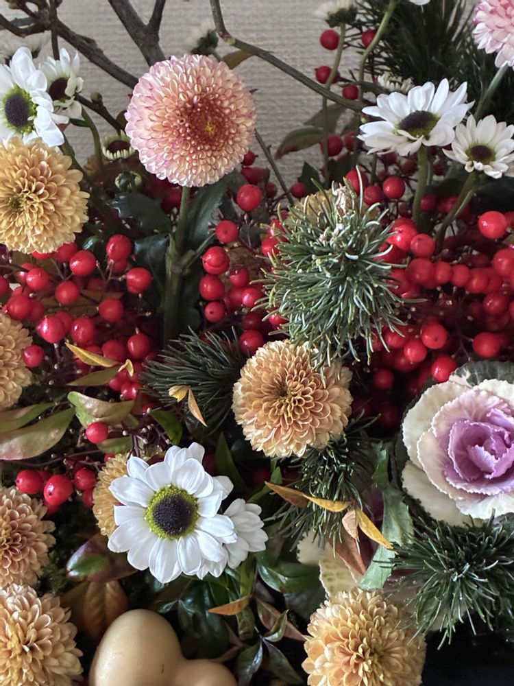 丸い花材で、可愛いお正月🎍