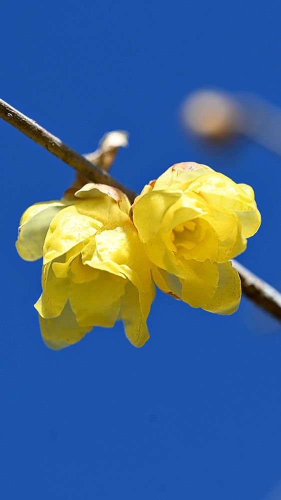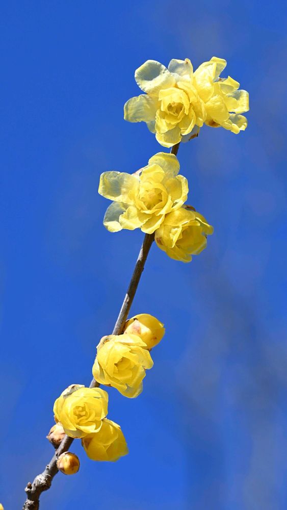 青空🟦に蝋梅💛が映えて綺麗ですね。